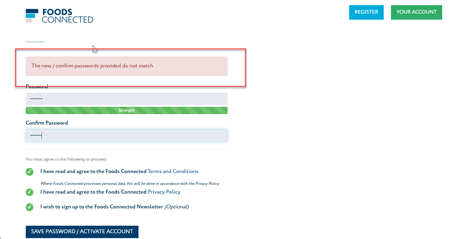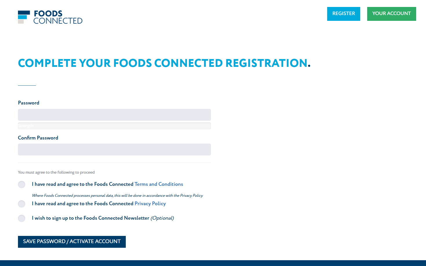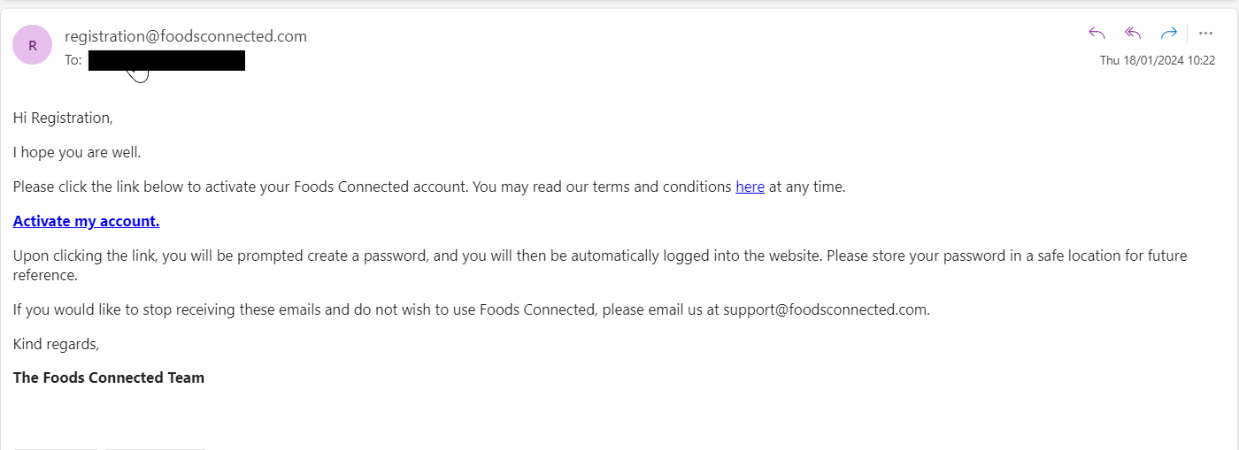 You have been invited to activate an account with Foods Connected from your customer, whereby you will have received the following email: (If this email is not in your inbox, please check your junk/spam folder.)